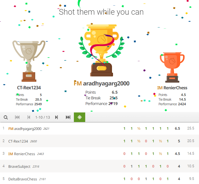 Many congratulations to Aradhya! He won the Bullet tournament today with 6.5/7 while celebrating his 21st birthday!